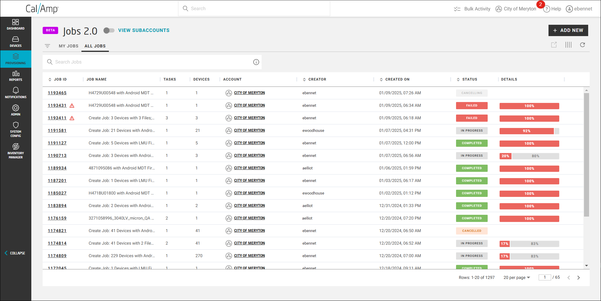 What does the new-and-improved implementation of the Jobs screen, which you can find at Provisioning >> Jobs 2.0, offer? You'll find that the user experience has been significantly enhanced on the new page.