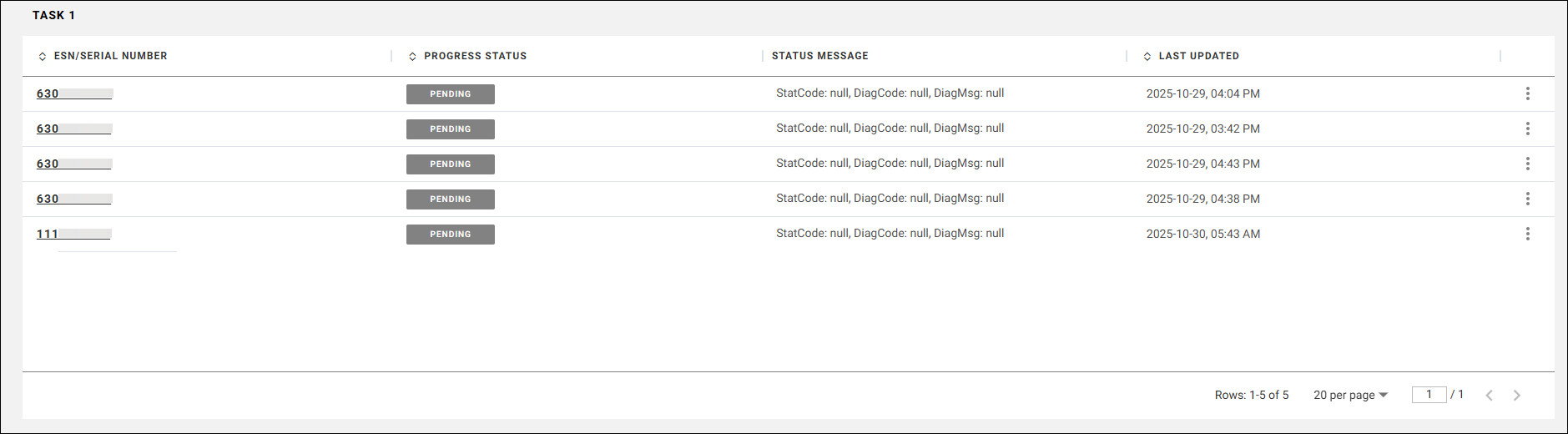 - Select the row of the task in the top grid to see details about each device's status for it in the second grid.